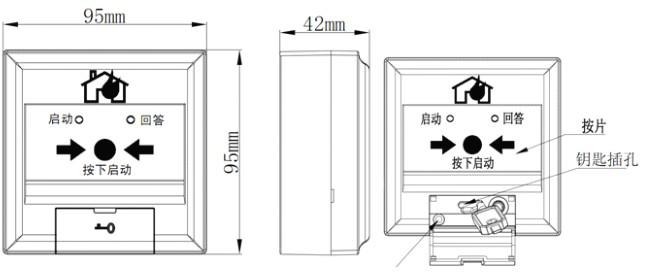 上圖所示,消火栓按鈕下端有一個鑰匙標志的擋板,將其打開則可看見里面的鑰匙孔,使用專用鑰匙就可以對消火栓按鈕進行復位操作。